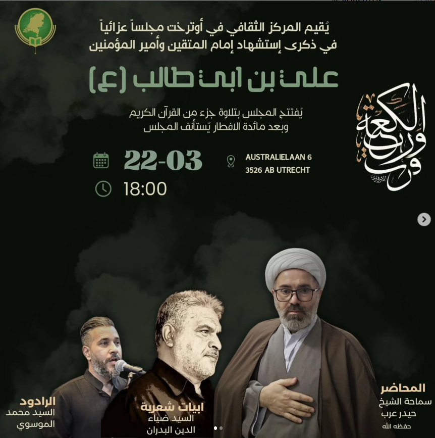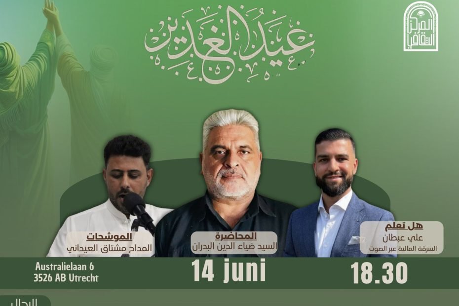 Ter gelegenheid van een van de mooiste en belangrijkste feestdagen – Eid al-Ghadir – nodigt het Cultureel Centrum in Utrecht jullie van harte uit om samen deze bijzondere avond te vieren: